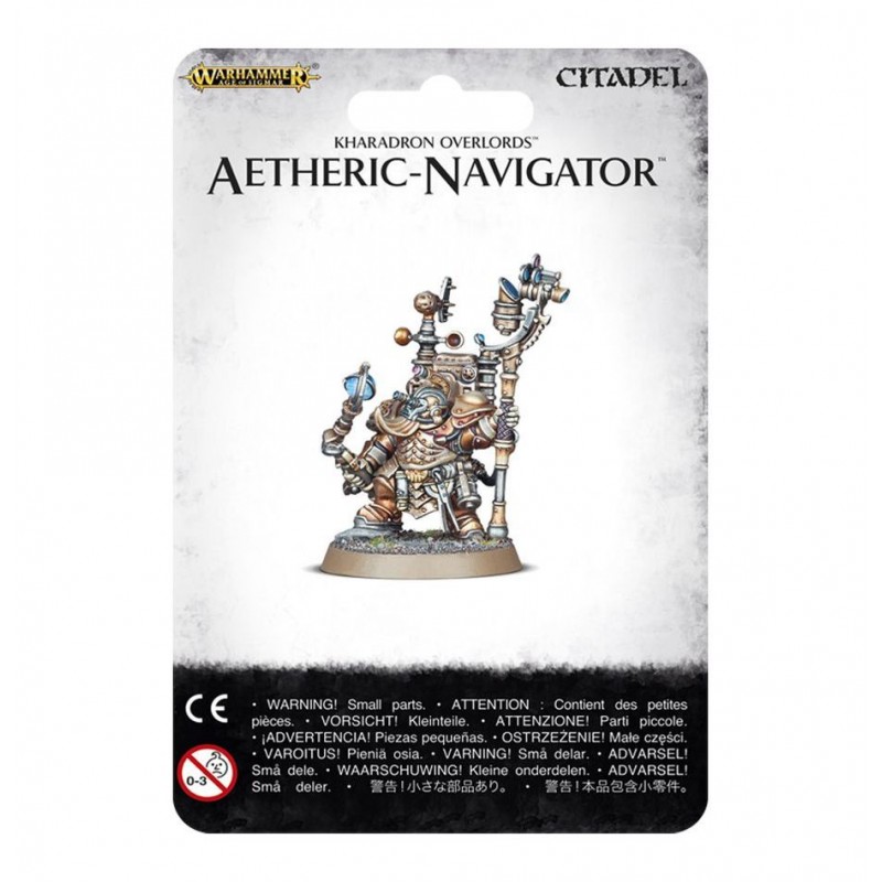 This plastic kit includes all the parts needed to assemble an Ethereal Navigator. In a dynamic pose, holding his zephyroscope, he's fully equipped with gadgets and measuring instruments to guide the aerofoils according to the conditions - with optics, filters, an anemometer on his right shoulder, a map case, tubes and power cables for his suit accessories... he's the very embodiment of Kharadron technology.