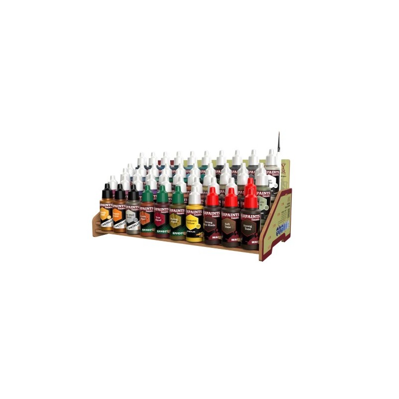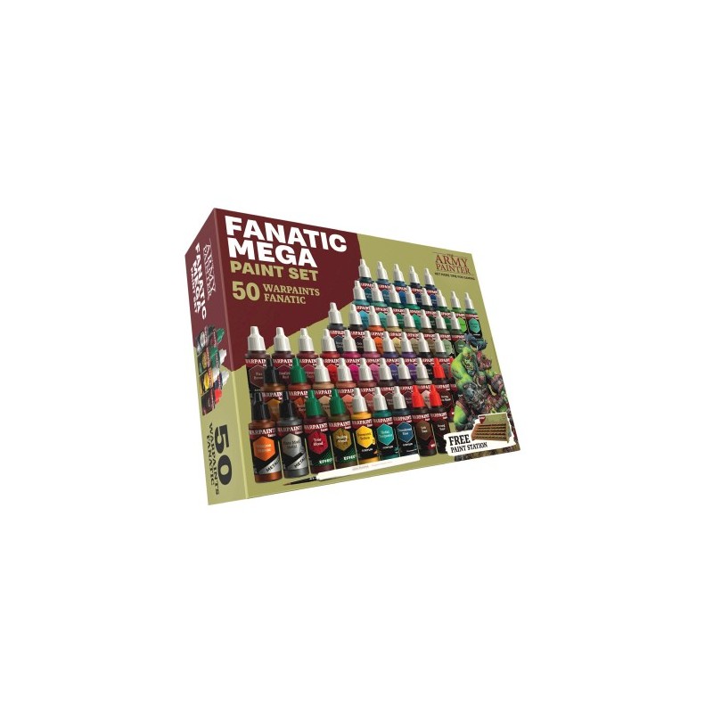 Included in the Warpaints Fanatic Mega Paint Set is a painting guide and a complimentary Character Brush. As an added bonus, you'll receive an exclusive Paint Station designed specifically for your Warpaints Fanatic paints. This handy station makes it easier to manage and organize your paints between sessions, holding all 50 paints included in the Mega Paint Set.