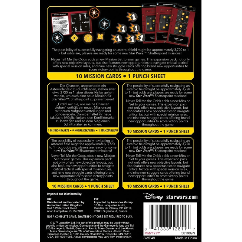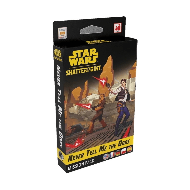 Players can embark on a new Star Wars™: Shatterpoint mission with this mission pack! Featuring a new Mission Map and 9 Conflict Maps, the "Never Tell Me the Odds" Mission Pack adds more variety to Shatterpoint games with new objective layouts and special mission rules.