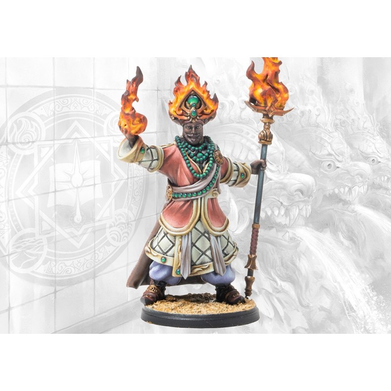 The most powerful of the Wizard Kings' spellcasters, the Maharajah maximises the potential of Rituals. Like all Wizard King characters, the Maharajah can choose between spells from the court of Air or Fire, which will in turn provide Main Regiments of this Element. Like all army commanders, the Maharajah has access to unique spells and rituals, with a strong emphasis on speeding up ritual completion for himself and all other spellcasters. The Maharajah is perfect for the player who likes to deploy the full power of Rituals on the battlefield and diving deep into this unique spellcasting mechanic.