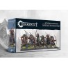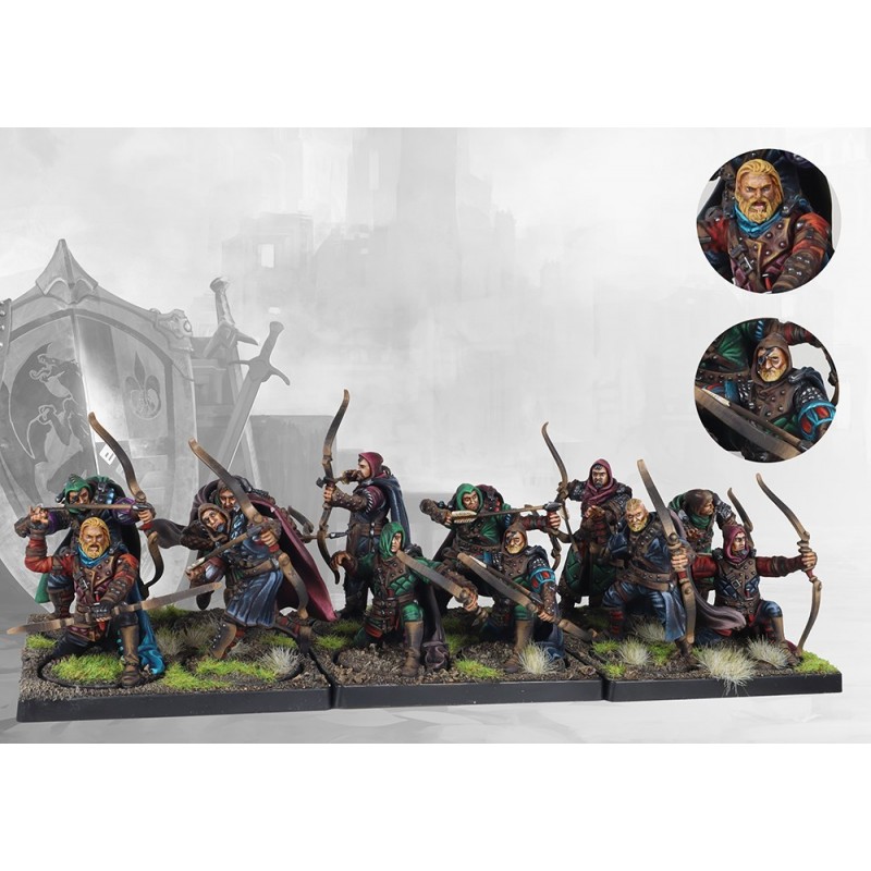 Each pack contains 12 models, with a command extension and regiment supports included. Two command cards are included. (Triple kit, also allowing you to create Longbow Archers and Hunter Cadres)