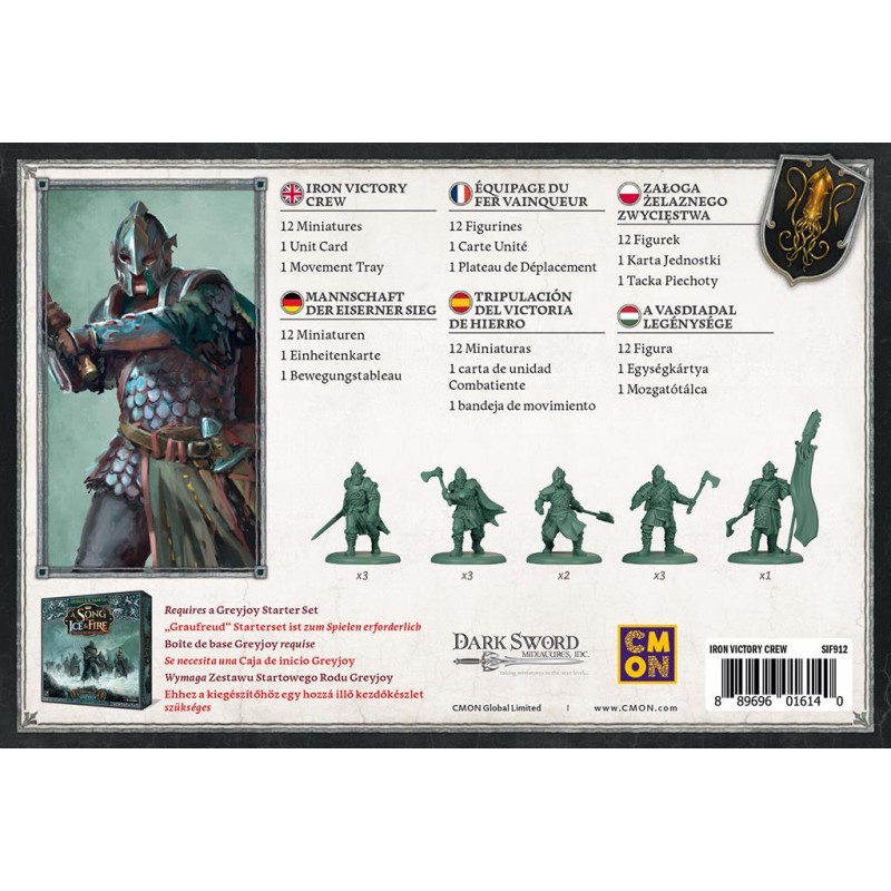 The Iron Victory Crew unit box for A Song of Ice and Fire: Tabletop Miniatures Game offers players of House Greyjoy a new unit focused on hand-to-hand combat. These well-defended raiders hit hard with their battle-axes, and become even more ferocious once they've accumulated a few Loot tokens.