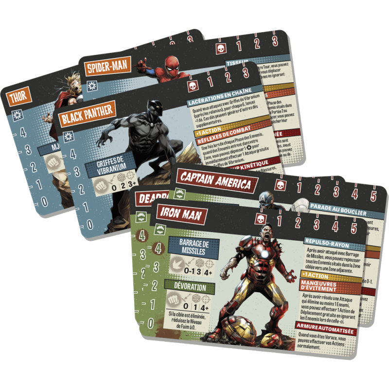 Marvel Zombies is a cooperative game in which 1 to 6 players take on the role of zombified Super-Heroes battling Agents of S.H.I.E.L.D. and Super-Heroes controlled by the game. The aim is to complete missions, defeat enemies and, above all, satisfy your ravenous hunger! Eliminating enemies and devouring citizens will make you stronger, but the more dangerous you become, the more enemies will flock to hunt you down. Your insatiable hunger makes you more powerful, but if you don't feed yourself, it will consume your body and mind. Only by working together and surpassing their own limits can the Zombie Heroes find the key to their salvation!