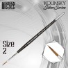 Range of Kolinsky Green Stuff World brushes, SILVER SERIES. Handcrafted with a high quality wooden handle and a natural Kolinsky bristle tip, secured by a brass ferrule, these brushes offer a fluid and precise painting experience, ideal for amateurs and experts alike.