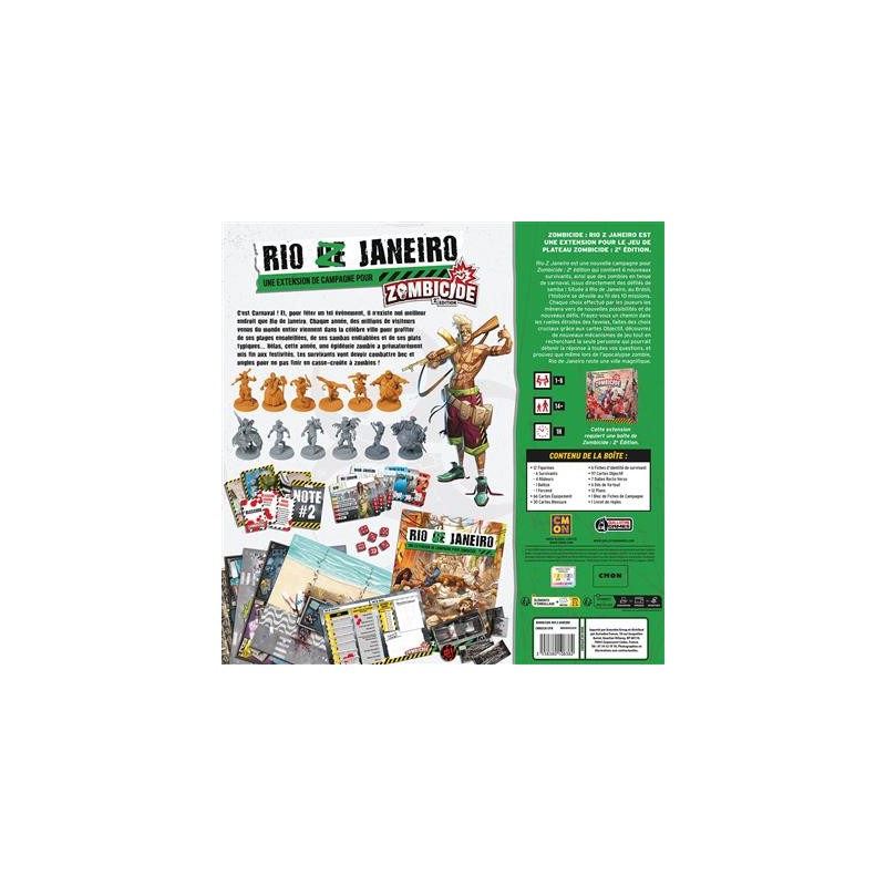 "Rio Z Janeiro" is a new campaign for Zombicide: 2nd Edition, featuring 6 new survivors and zombies dressed in carnival costumes directly inspired by samba parades! Set in Rio de Janeiro, Brazil, the story unfolds over 10 missions. Players' choices will open the door to new possibilities and challenges. Explore the narrow alleyways of the favelas, make crucial decisions thanks to the Objective cards, discover new gameplay mechanisms while searching for the one person who might hold the answers to your questions, and show that even in the midst of a zombie apocalypse, Rio de Janeiro is still a beautiful city.