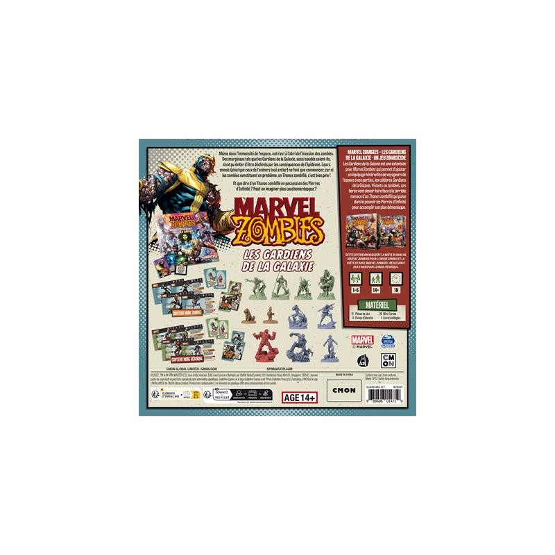 **Guardians of the Galaxy** is an expansion for Marvel Zombies* that introduces a motley crew of space travellers to your games: the famous Guardians of the Galaxy. This expansion is compatible with both Zombie Mode and Heroic Mode, so it can be used with the *Marvel Zombies* and *The X-Men Resistance* base packs.