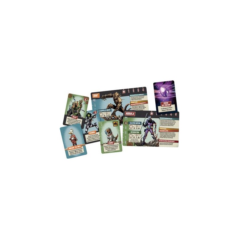 It includes four superheroes: Mantis, Gamora, Nova and Groot. On the zombie side, you'll find Star-Lord, Rocket, Drax and Nebula. As their common enemy, Thanos rises up to challenge them.