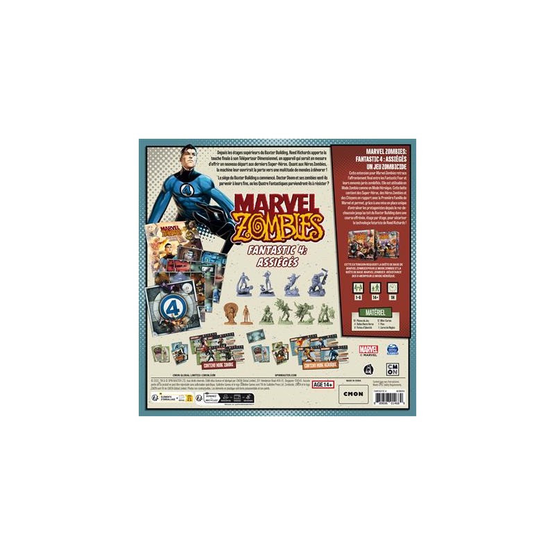 Fantastic 4: Under Siege is an expansion pack for Marvel Zombies featuring the ultimate showdown between the Fantastic Four and their zombified arch-enemies. This expansion can be played in Zombie Mode or Heroic Mode, and is compatible with the Marvel Zombies and The X-Men Resistance base packs.