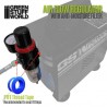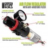 The GSW air pressure regulator, fitted with a moisture filter, ensures a dry, purified airflow at a stable pressure by capturing moisture before it reaches your airbrush. Moisture is filtered and condensed in a transparent polycarbonate resin chamber, which is easily emptied via a drain valve.