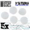 Filter compatible with the multi-purpose airbrush cleaning can. Designed to capture unwanted residues, these filters prevent paint, solvents and other cleaning agents from dispersing into the air.