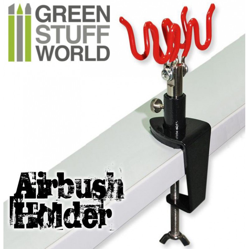 This sturdy clamp can hold up to 2 airbrushes simultaneously. Constructed from steel, it attaches securely to the edge of your table using a clamping screw. The 360° swivel head offers maximum flexibility.
