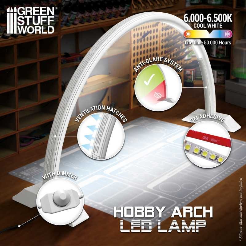Elle se distingue par son design moderne à refroidissement vertical, permettant de longues sessions de peinture et de modélisme. Son système anti-éblouissement latéral et son variateur d'intensité lumineuse ajoutent à son ergonomie. De plus, elle peut accueillir plusieurs supports de caméra spécialement conçus pour vous enregistrer pendant que vous travaillez. Ces supports sont également disponibles dans notre catalogue.
