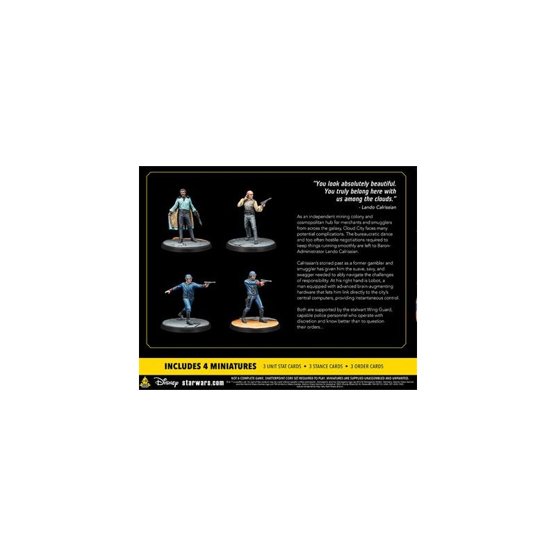 J'en profite !En tant que colonie minière indépendante et carrefour cosmopolite pour marchands et contrebandiers venus de toute la galaxie, la Cité des Nuages doit faire face à de nombreuses complications potentielles. La tâche de maintenir un fonctionnement harmonieux, entre négociations souvent tendues et méandres bureaucratiques, incombe au Baron-Administrateur Lando Calrissian.
