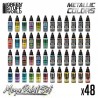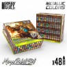 Ce set de peintures contient 48 flacons de 17 ml avec billes de mélange, incluant les couleurs suivantes :