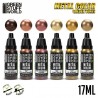 Ces peintures métalliques à base d'eau, non toxiques, sont spécialement adaptées pour une application au pinceau ou à l'aérographe. Pour une utilisation optimale à l’aérographe, il est conseillé de les diluer dans un ratio de 1:1 avec un diluant acrylique.