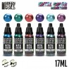 Ces peintures métalliques, à base d'eau et non toxiques, sont spécialement conçues pour une application aussi bien au pinceau qu’à l’aérographe. Pour de meilleurs résultats à l’aérographe, il est recommandé de les diluer à raison de 1:1 avec un diluant acrylique.