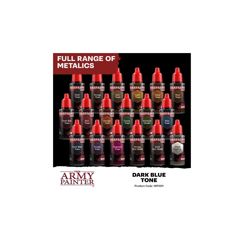 J'en profite !Le Warpaints Fanatic Wash : Dark Blue Tone est un lavis bleu foncé conçu pour ombrer et accentuer les détails de vos figurines.
