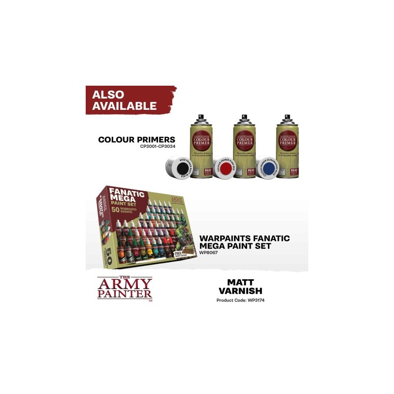 J'en profite !La Warpaints Fanatic Effects : Matt Varnish est un vernis mat conçu pour offrir une finition mate tout en protégeant vos figurines.