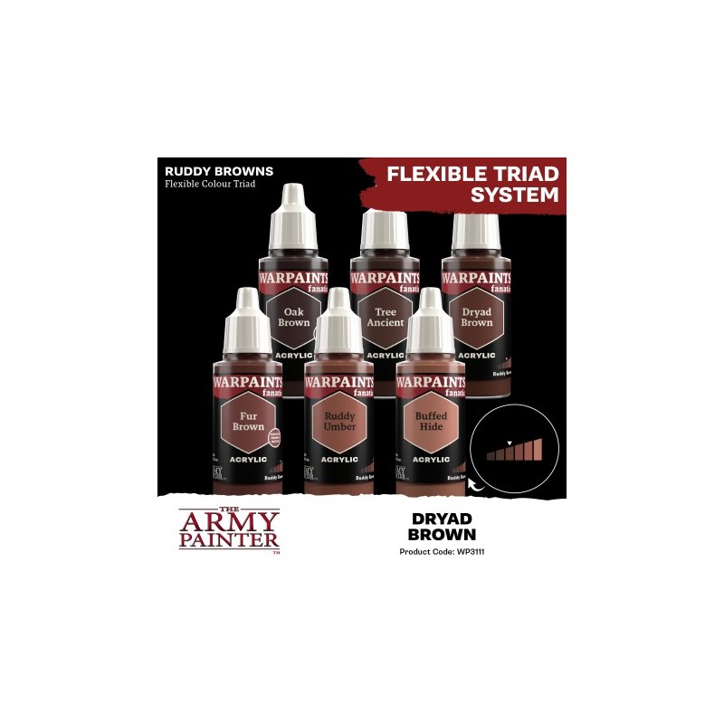 J'en profite !Le Warpaints Fanatic : Dryad Brown est un brun rougeâtre foncé, parfait pour les tons intermédiaires de bruns rouges ou même comme couche de base. Il fait partie des deux tons moyens de la triade de couleurs flexibles "Bruns rouges" et son nom pratique est "Brun rougeâtre foncé".