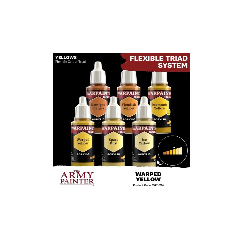 J'en profite !Le fanatique de Warpaints : Warped Yellow est un jaune radieux, polyvalent, qui peut être utilisé à la fois comme ton moyen et comme accentuation. C'est l'une des deux teintes centrales de la triade des couleurs flexibles « Jaunes » et elle est identifiée par son nom de couleur pratique, « Jaune brillant ».