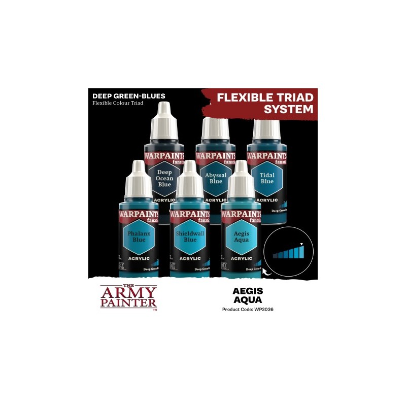 J'en profite !The Warpaints Fanatic: Aegis Aqua est un bleu verdâtre pâle, parfait comme surlignage naturel pour les nuances de bleu-vert. C’est la teinte la plus claire de la triade flexible des couleurs « Bleu-verts profonds », et son nom pratique est « Bleu verdâtre pâle ».