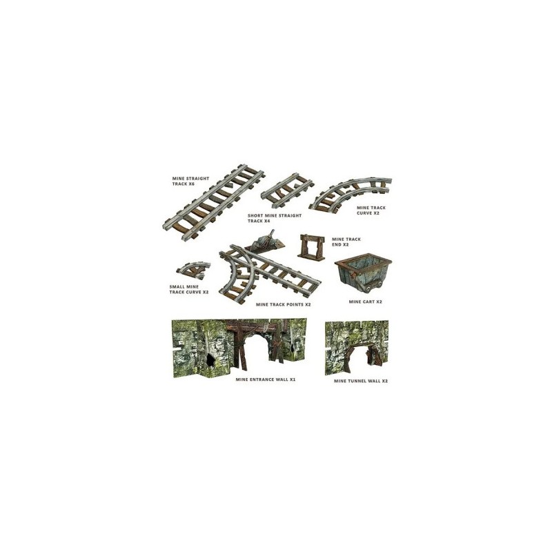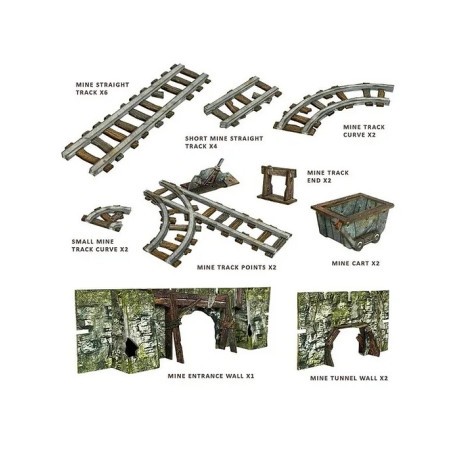 J'en profite !Les Mines de Meruta s’intègrent parfaitement au Fantasy Dungeon pour transformer votre plateau en une mine immersive. Les tunnels peuvent s’étendre loin sur les bords du plateau, tandis que la zone principale représente l’entrée de la mine, là où les rails convergent et où l’action prend vie ! Le kit comprend suffisamment de rails pour traverser plusieurs pièces, mais il peut également être configuré pour créer une grande zone ouverte selon vos besoins.