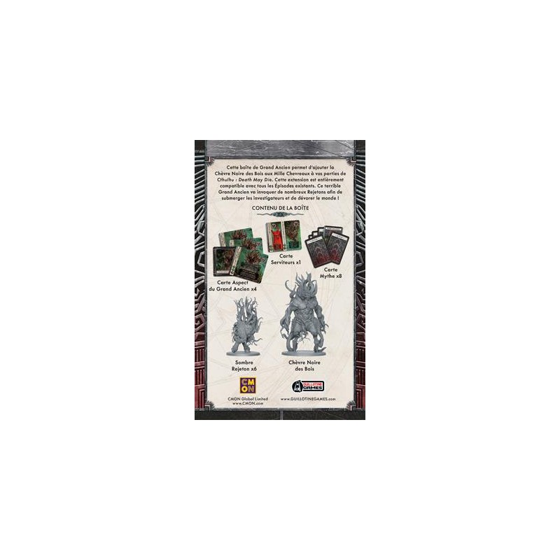 J'en profite !Cette boîte introduit un nouvel Ancien à combiner avec n'importe quel épisode, offrant une expérience de jeu inédite. Vous devrez affronter l'essaim des Dark Young avant de tenter de vaincre la redoutable Chèvre Noire des Bois elle-même !
