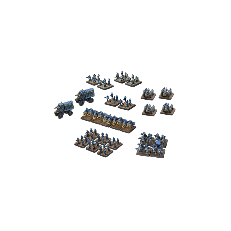 Armoured Clash est un jeu de guerre sur table à l'échelle 10 mm, mettant en scène des figurines finement détaillées représentant des unités d'infanterie, des escadrons de véhicules blindés, et des machines de combat imposantes appelées Behemoths. Choisissez votre faction et luttez pour la suprématie dans une version alternative du XIXe siècle, où chaque bataille façonne l'avenir de cette ère dystopique !