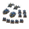 J'en profite !Cette boîte de régiment blindé Armoured Clash vous permet de renforcer votre force de l'Union avec des unités mécanisées supplémentaires. Les chars de combat principaux Rolling Thunder sont des véhicules lourds polyvalents, idéaux pour des attaques manœuvrées. Les méchas lourds UR-45 apportent un soutien crucial à vos unités d'infanterie les plus vulnérables, déclenchant des tirs dévastateurs avec leurs canons Gatling et écrasant leurs ennemis grâce à leurs puissantes griffes d'assaut. La cavalerie Iron Eagle UR-31E, grâce à son blindage robuste et son courage mécanique, reste difficile à repousser. Toutes ces unités sont appuyées par l'artillerie lourde Armstrong, capable de percer les défenses les plus solides avec ses puissants obus.