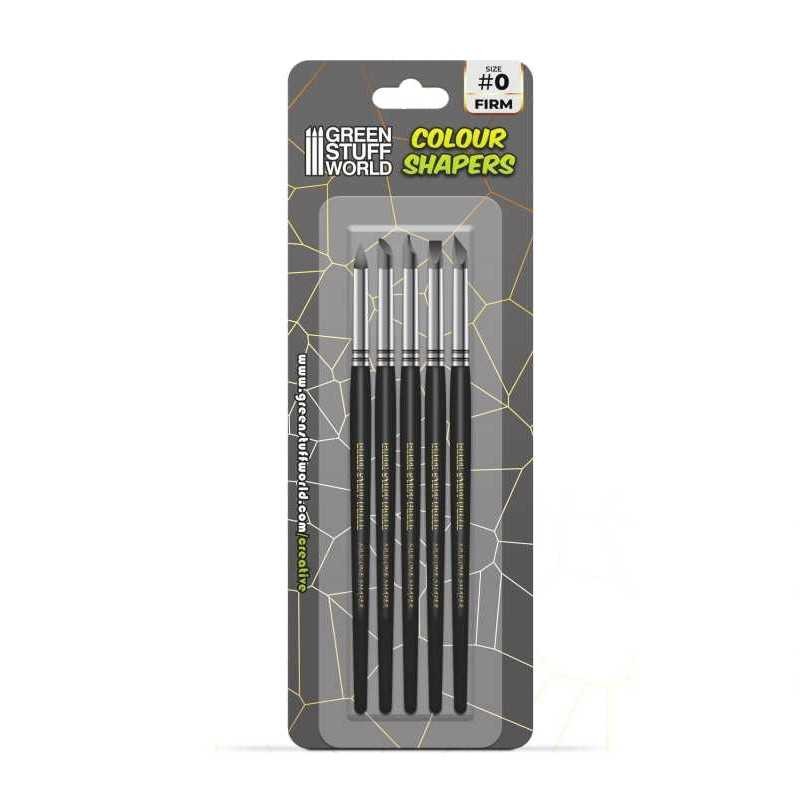 Les modèles proposés ont des applications spécifiques selon la pâte utilisée. Selon Green Stuff World, les pinceaux blancs sont recommandés pour les pâtes plus souples, comme Sculpey ou Fimo, tandis que les pinceaux noirs sont mieux adaptés aux pâtes plus dures, comme la Résine Verte (Green Stuff), Sculpey Firm, ou autres. Cela dépend des préférences personnelles, mais à mesure que vous perfectionnez votre technique, il est idéal d’avoir un pinceau de chaque type.