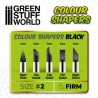 Les pinceaux en silicone noir ferme, également appelés couleur shapers, sont idéals pour la sculpture et les détails de vos modèles grâce à leurs pointes en silicone qui empêchent la pâte à sculpter, les peintures, le vernis, les adhésifs, etc., de coller.