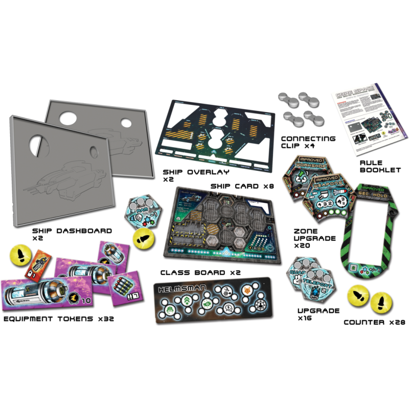 L'extension inclut deux tableaux de bord de vaisseaux améliorés complets, ainsi que les règles et un ensemble complet de cartes de vaisseaux à insérer sous les superpositions.