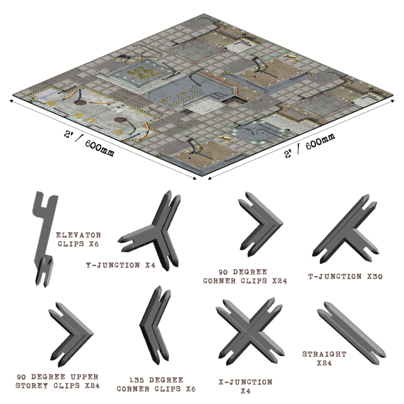 J'en profite !Cette boîte contient tout ce dont vous avez besoin pour construire un plateau de jeu à un seul niveau, couvrant une surface allant jusqu’à 2' x 2' (600mm x 600mm) ou plus, idéal pour tous les jeux de science-fiction 28-35mm dans un univers dystopique futuriste.