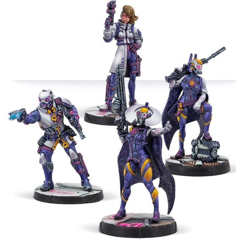 Cette boîte contient 4 figurines : 1 PROXY Mk1 Engineer avec fusil combi, 1 PROXY Mk2 Hacker, 1 PROXY Mk2 équipé d’un fusil de sniper MULTI et 1 PROXY Mk5 avec mitraillette. La grande polyvalence que les Post-humains apportent à votre armée en fait un ajout parfait à votre pack d'action des opérations ALEPH.