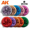 Leur équilibre parfait entre fluidité et viscosité assure une rétention optimale des pigments, garantissant une excellente adhérence et une grande résistance. La formule spéciale empêche la formation de bulles et garantit que, une fois sèches, elles ne se réactivent ni à l’eau ni avec leur propre médium. Pour intensifier l’effet, il est conseillé d’appliquer deux couches légères. Pour plus de transparence ou un contraste réduit, l’utilisation du médium AK13010 est recommandée. Afin d’éviter un séchage trop lent, il est préférable de ne pas mouiller les zones d’application.
