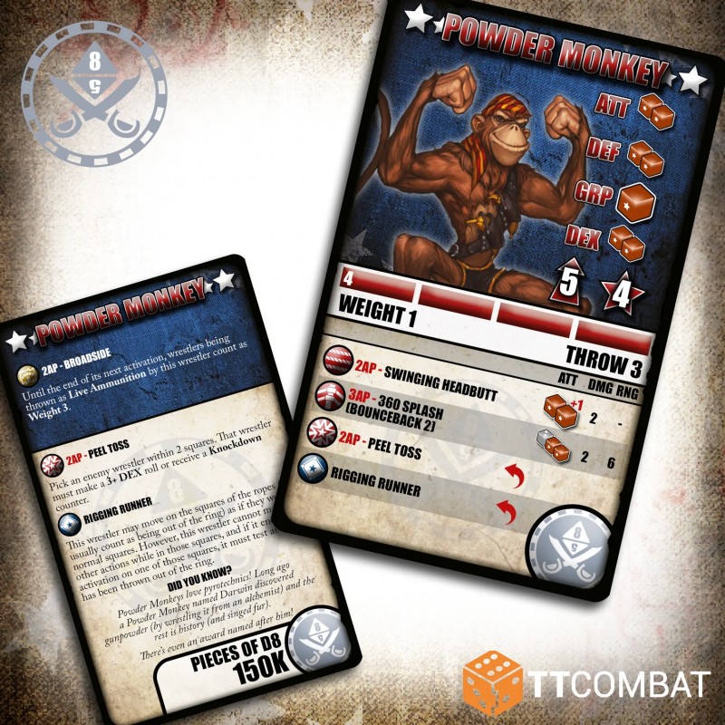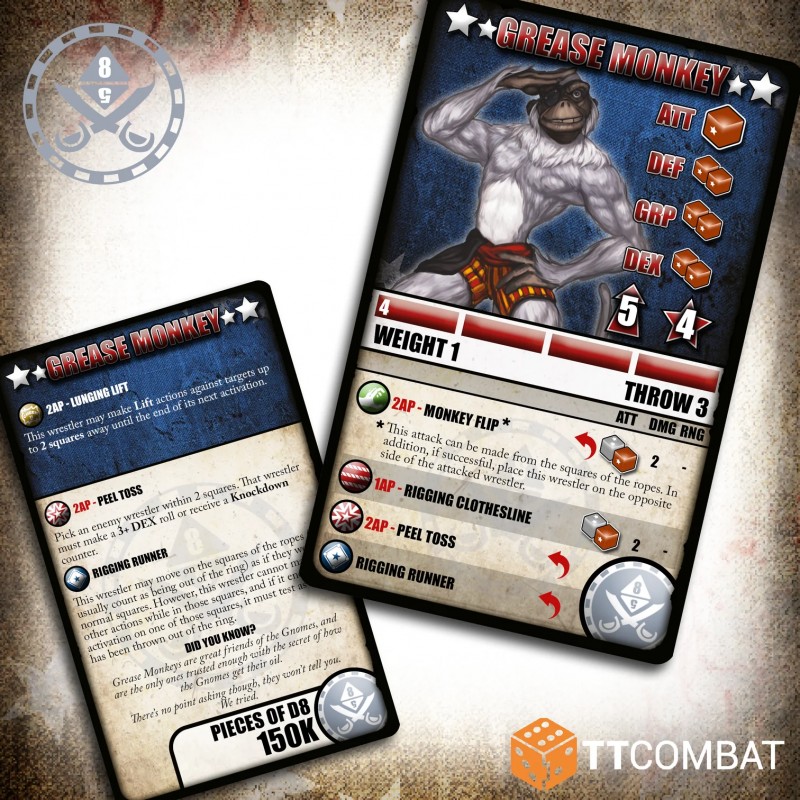Enfin, surgissant des gréements, voici l’équipage des singes. Le Powder Monkey et le Grease Monkey utilisent leur Lancer Épluchure pour attraper les catcheurs adverses à distance, rendant l’esquive presque impossible face à ces primates aux bras interminables.