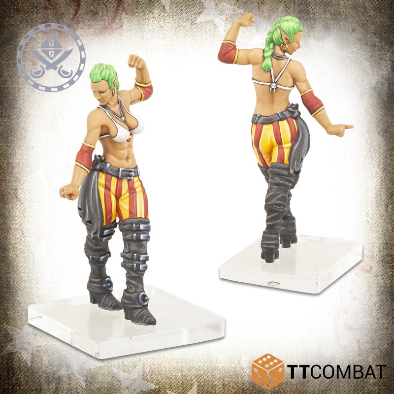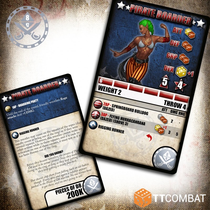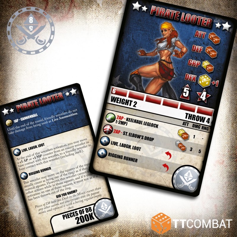 Juste derrière, la Pirate Looter fonce sur le ring, toujours à la recherche des objets les plus précieux. En plus de son flair pour le butin, elle apprend à ses alliés comment bien retomber après un lancer.