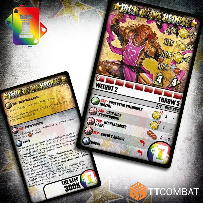 J'en profite !Jack of All Hearts est l’un des membres les plus emblématiques de The Keep. Impossible de le manquer sur le ring, vêtu de son armure complète et orné de rubans flottants.