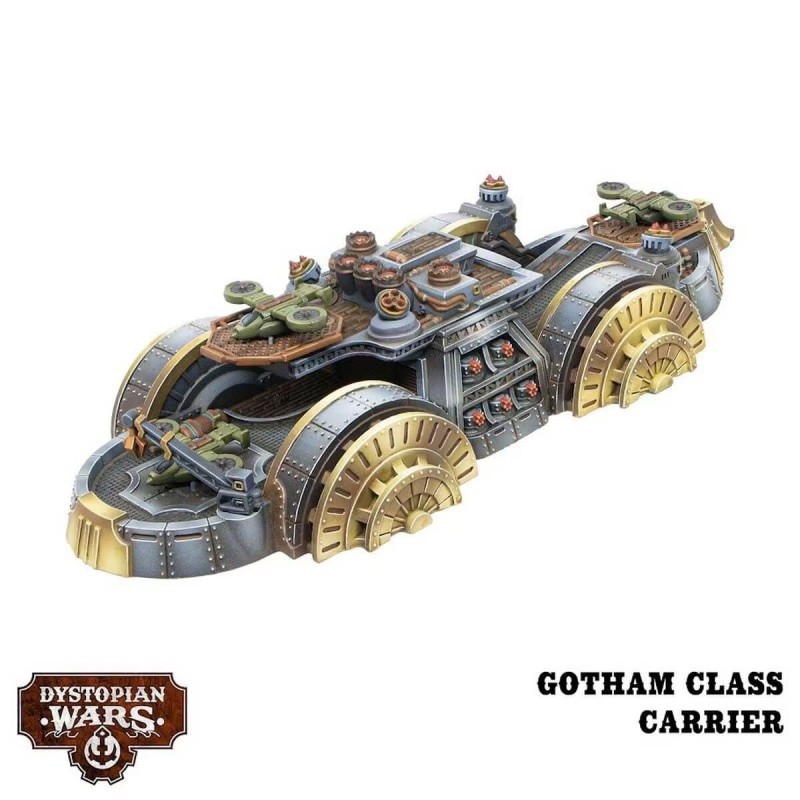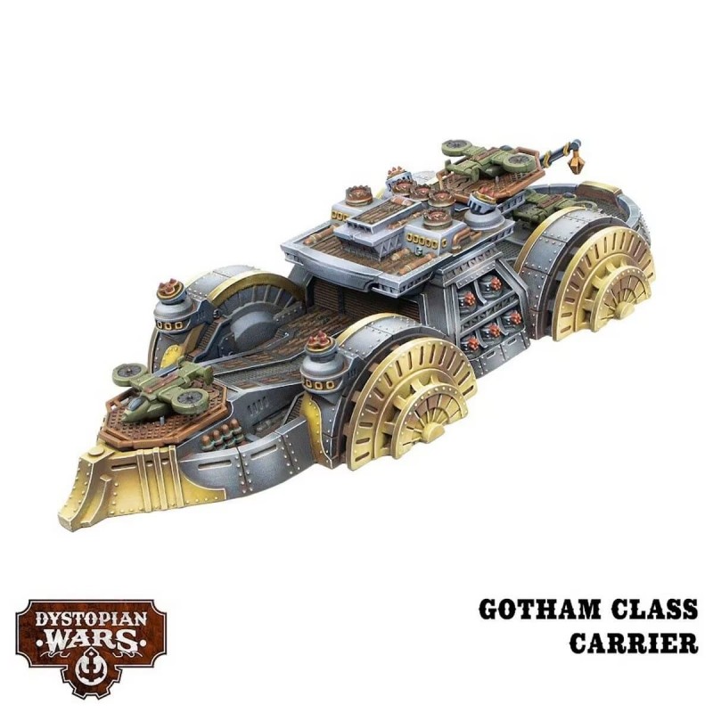 Le porte-flotte littoral Gotham était redouté lors des violents affrontements de cette guerre. Malgré sa taille imposante, son faible tirant d’eau lui permettait de naviguer le long des côtes, dans les estuaires et sur les grands fleuves des Amériques. Son escadrille d’autogyres Talon permettait aux Terminators et aux Pacifiers de mener des frappes éclair contre des ennemis qui se croyaient à l’abri.