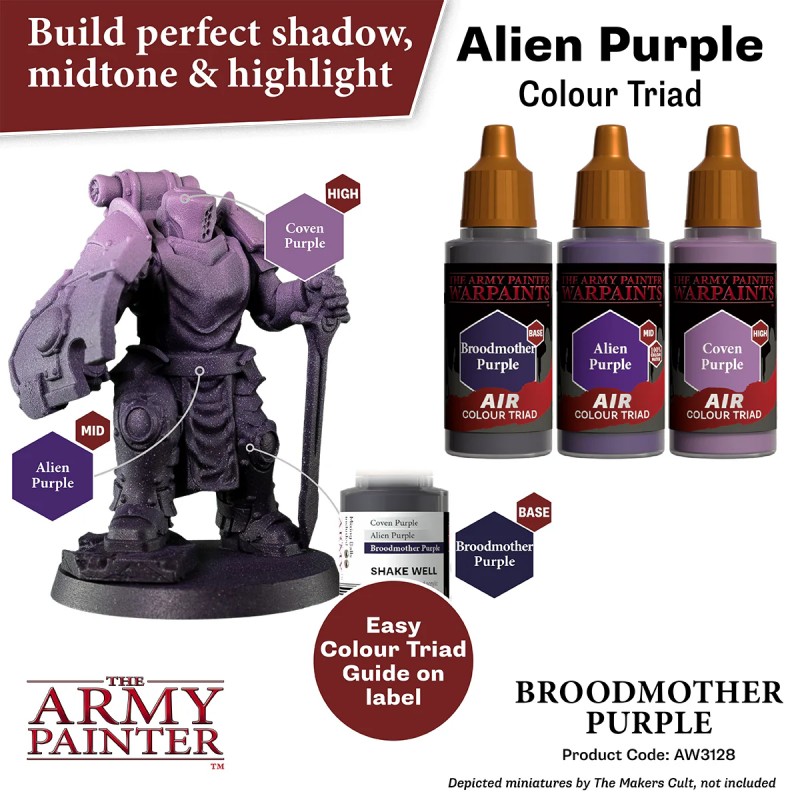 La gamme Warpaints Air repose sur un système de triade innovant : chaque couleur Warpaints Acrylics est associée à une teinte de Base et une teinte d’Éclaircissement. Cela simplifie le surlignage et l’ombrage zénithal, rendant la peinture d’armée plus rapide et harmonieuse.