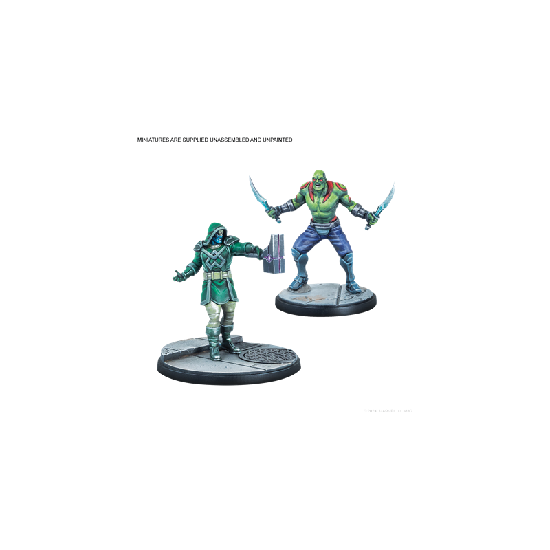 Les Gardiens de la Galaxie sont célèbres pour être parmi les guerriers les plus excentriques de l’univers. Gamora, adoptée par Thanos, a été élevée pour devenir la combattante la plus redoutable de la galaxie, aux côtés de Nebula, l’autre fille adoptive de Thanos. Créé par le dieu titan Kronos, Drax utilise sa force colossale et son invulnérabilité quasi absolue pour affronter n’importe quel adversaire. En tant qu’Accusateur Public Suprême de l’Empire Kree, Ronan a combattu aussi bien aux côtés qu’en opposition à de nombreux groupes, dont les Gardiens de la Galaxie.