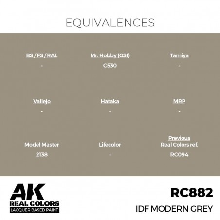 Cette teinte correspond à la couleur standard des véhicules et équipements militaires des Forces de Défense Israéliennes (IDF) depuis mai 1981. Elle reproduit fidèlement la teinte emblématique utilisée sur les chars, blindés et véhicules de soutien de l’armée israélienne, garantissant un rendu réaliste et historiquement exact pour toutes les maquettes contemporaines ou modernes.