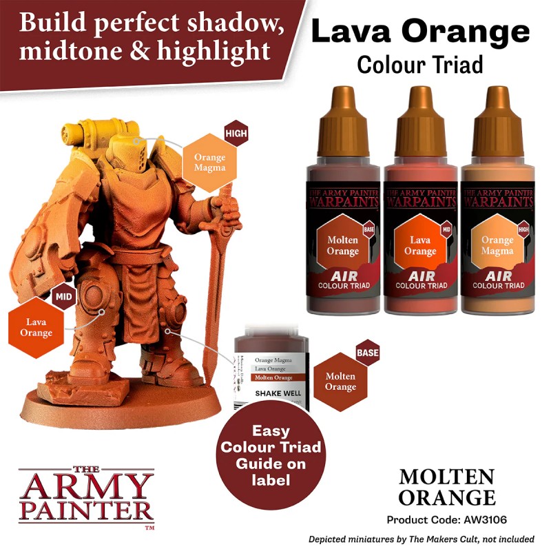 La gamme Warpaints Air repose sur un système de triade innovant : chaque couleur Warpaints Acrylics est associée à une teinte de Base et une teinte d’Éclaircissement. Cela simplifie le surlignage et l’ombrage zénithal, rendant la peinture d’armée plus rapide et harmonieuse.