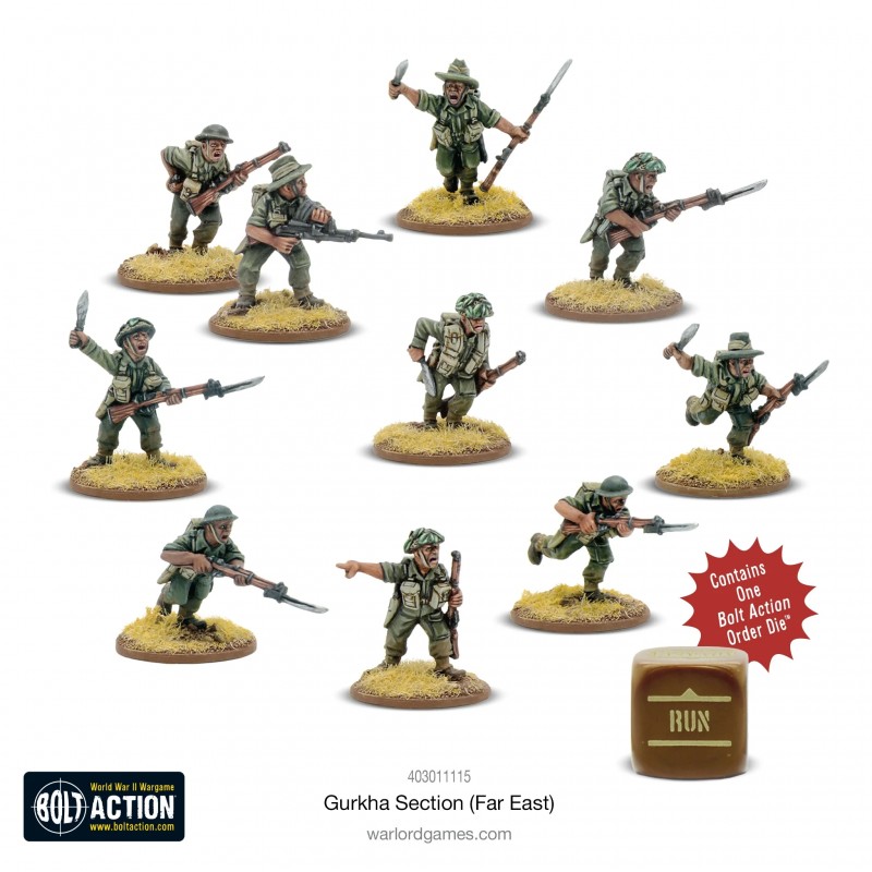 Ce set contient 10 figurines en résine Warlord au format 28 mm, accompagnées de socles plastiques. Il comprend un sous-officier, un soldat équipé d’une mitrailleuse légère Bren et huit hommes armés de fusils. Idéal pour représenter une unité Gurkha emblématique sur vos tables de jeu Bolt Action, ce pack apporte une touche d’exotisme et de férocité historique à vos armées. Figurines à assembler et à peindre.