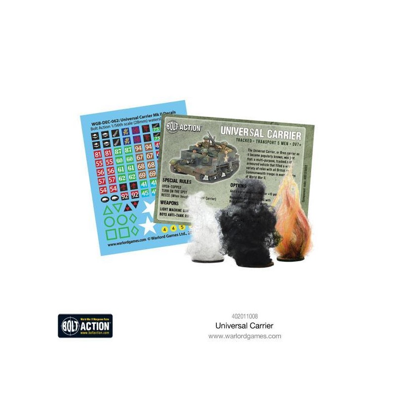 Le Universal Carrier a offert d’excellents services aux forces britanniques et alliées durant toute la guerre et a également été largement utilisé par l’Armée rouge. Aucun commandant du Commonwealth digne de ce nom ne saurait se passer de ces fiables et robustes véhicules pour soutenir ses courageux fantassins.