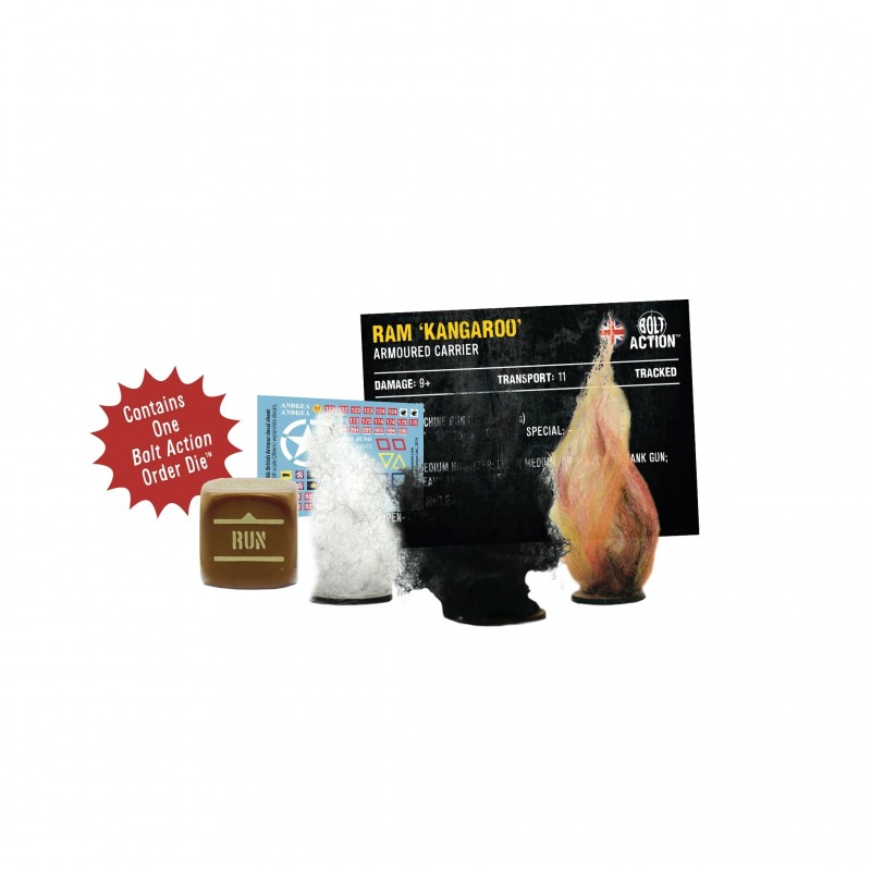 Ce kit contient un véhicule Kangaroo APC en résine et métal, une carte de statistiques Bolt Action (Troisième Édition), une feuille de décalcomanies couleur, un dé d’ordre Bolt Action, ainsi que des marqueurs de dégâts pour véhicule. Modèle fourni non assemblé et non peint.