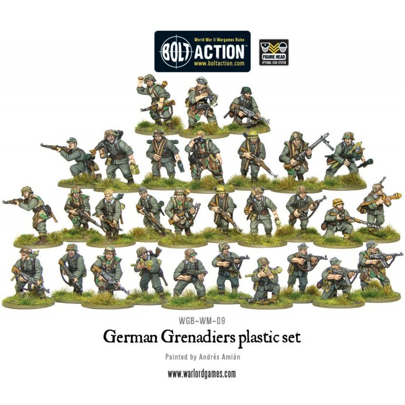 La boîte contient 30 figurines plastique au 1/56 (28 mm), accompagnées de socles ronds, d’une planche de décalcomanies en couleur, ainsi que d’une notice de montage. Grâce à la richesse des options de pose et d’armement, vous pourrez assembler des escouades dynamiques et personnalisées, adaptées à tous les scénarios Bolt Action. Que vous souhaitiez représenter une unité défendant Berlin, contre-attaquant dans les Ardennes ou harcelant les Alliés en Italie, ces grenadiers allemands seront au cœur de votre armée Bolt Action !