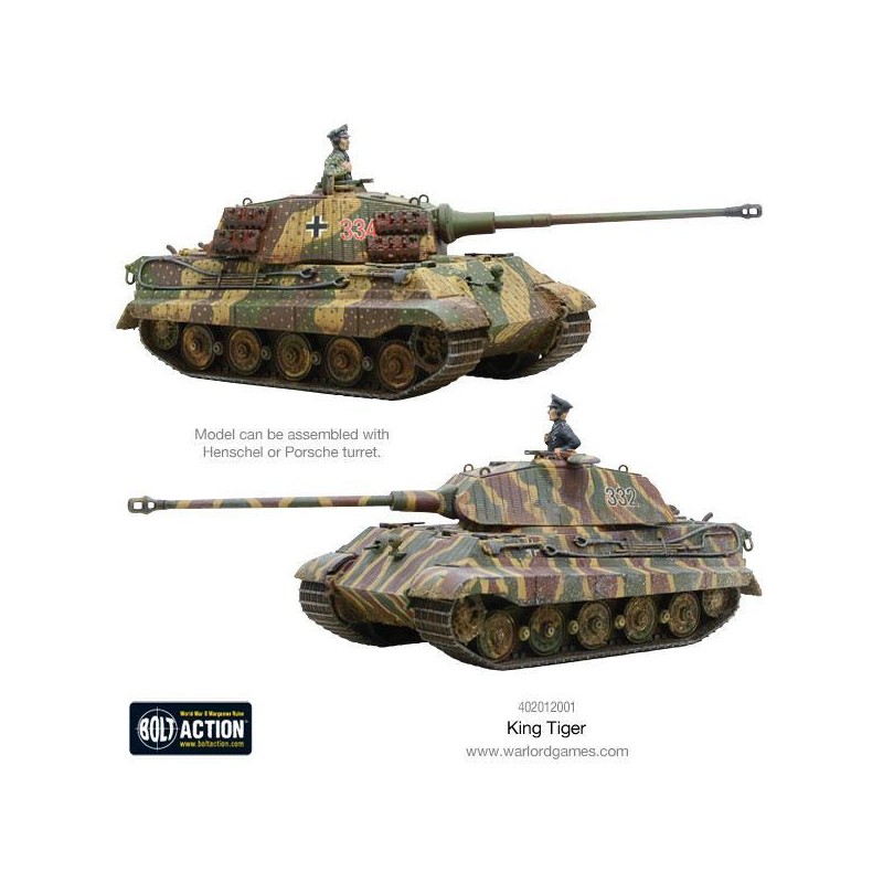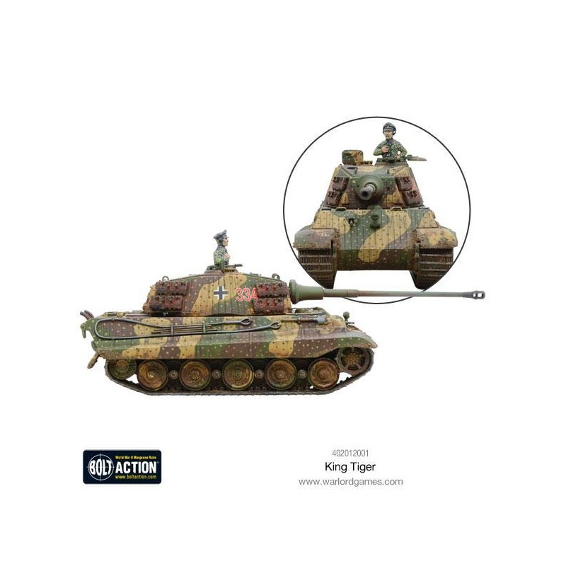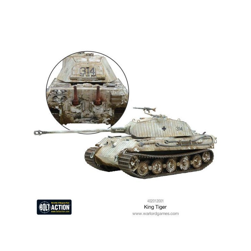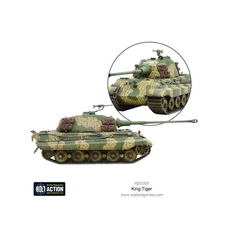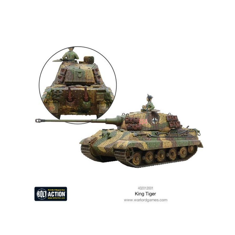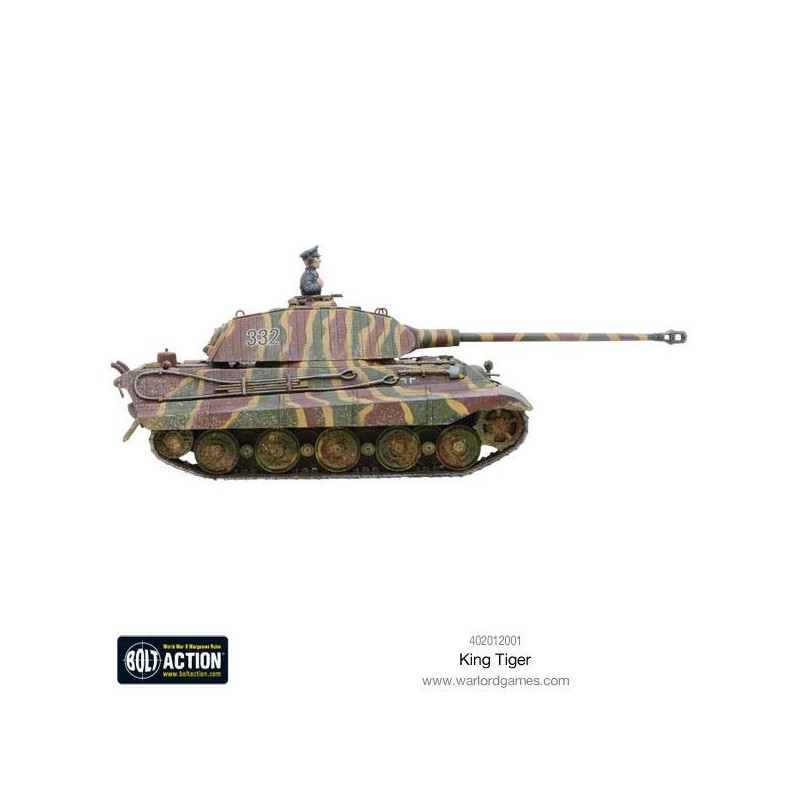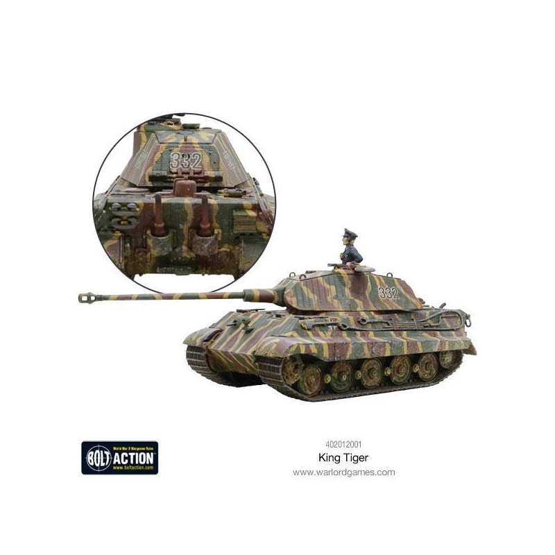 Le canon de 8,8 cm du King Tiger, connu pour sa précision redoutable, était capable de détruire n’importe quel char allié à plus de 2,5 kilomètres. Aucun véhicule allié n’était à l’abri à une telle distance. Dans le jeu Bolt Action, ce char est classé comme Super Heavy Tank, doté d’un canon antichar surpuissant, et peut être intégré aux pelotons blindés pour faire pencher la balance lors des affrontements. Il est également jouable dans Achtung Panzer!, le jeu de combats rapprochés entre blindés, avec des règles dédiées dans le livre de base.