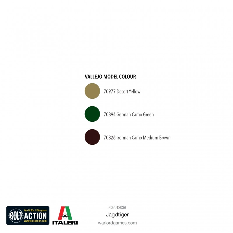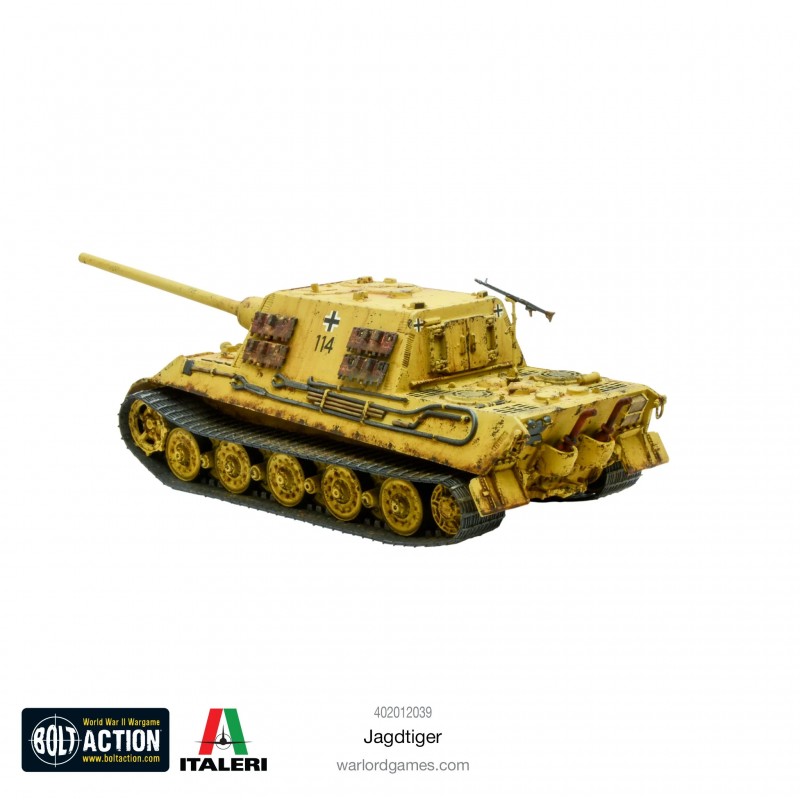 Dans les jeux Bolt Action, le Jagdtiger est considéré comme un char super lourd, équipé d’un canon anti-char super lourd efficace à longue portée sans pénalité de pénétration, et peut être intégré dans des pelotons blindés. Ce véhicule peut également être utilisé dans Achtung Panzer!, le jeu de combats rapprochés entre blindés, avec ses règles détaillées dans le manuel du jeu. Ce kit comprend un modèle en plastique dur à l’échelle 1/56, un commandant, une mitrailleuse montée, un guide de montage et peinture, des marqueurs de dégâts ainsi qu’une planche de décalcomanies, incluant les marquages du célèbre as Otto Carius.