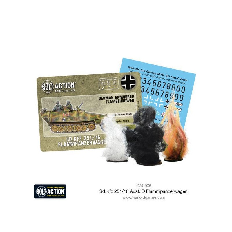 Cette boîte contient un modèle plastique de Sd.Kfz 251/16 à assembler, une fiche d’instructions, une planche de décalcomanies, une carte de statistiques pour Bolt Action ainsi que des marqueurs de dégâts. Ce véhicule est idéal pour les collectionneurs et joueurs souhaitant enrichir leurs forces allemandes avec un élément visuellement marquant et tactiquement redoutable. Parfait pour les scénarios Bolt Action en milieu urbain ou pour repousser l’infanterie retranchée ennemie.